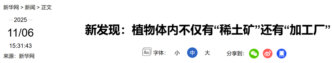 中国科学家在植物体内,发现了能吸收“稀土元素”的天然机制。